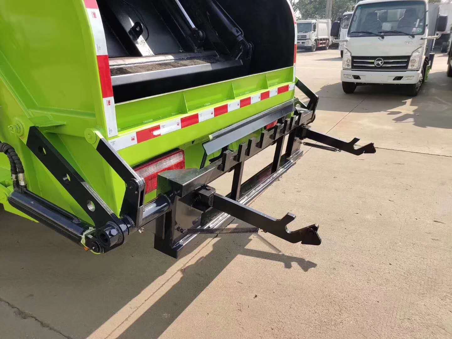 液压系统:由油箱、油泵、多路换向阀、液压缸、滤油器和高压软管组成,该系统能实现装卸垃圾的各种专用功能。