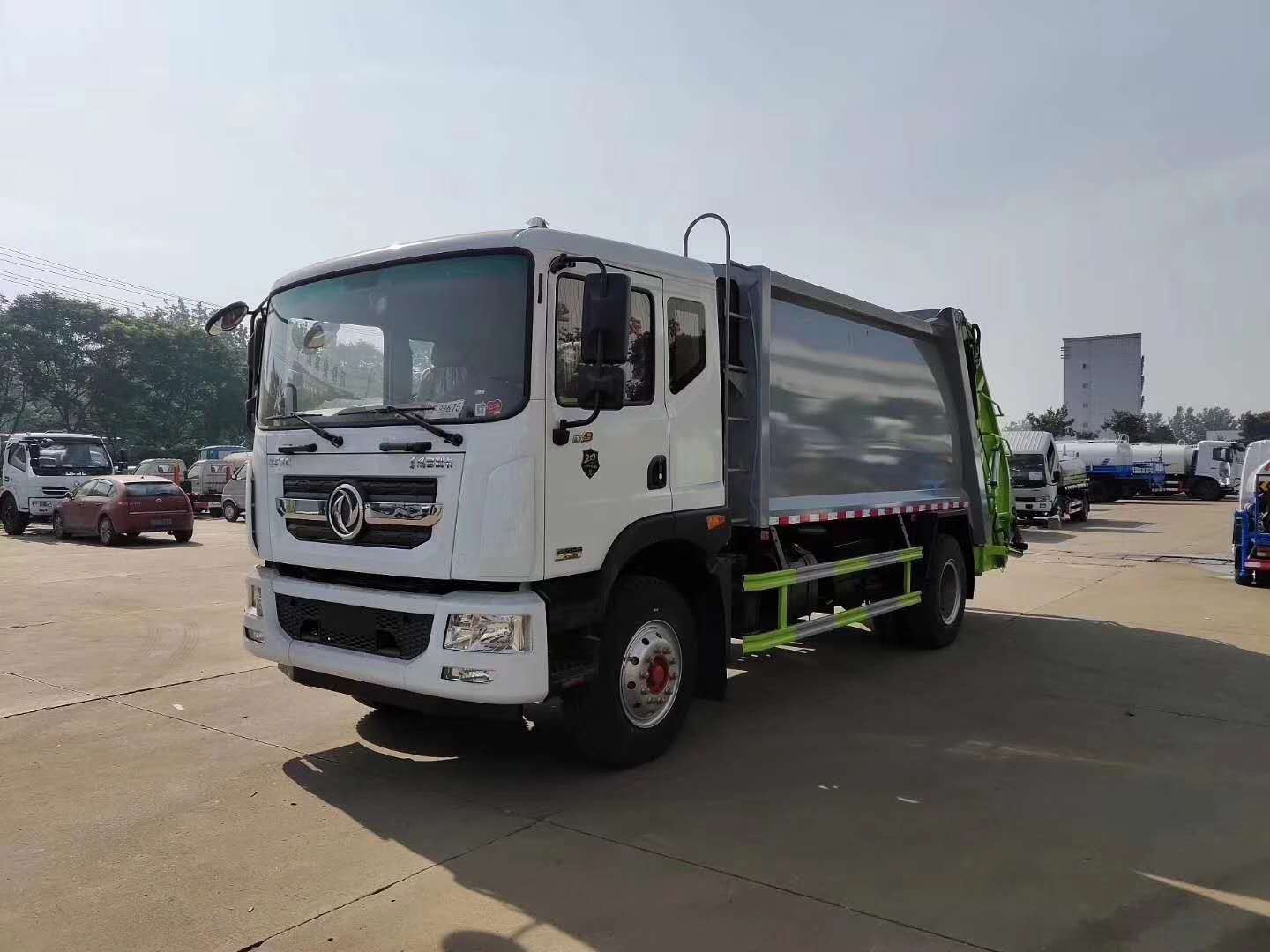 东风10吨压缩式垃圾车配置参数 购车请拨打页面电话!!!底盘配置:采用东风原装底盘,D9排半驾驶室,3950mm/4500mm轴距,康明斯180匹马力、玉柴160匹马力国五发动机,6档/小8档变速箱,9.00R20/10.00钢丝胎,方向助