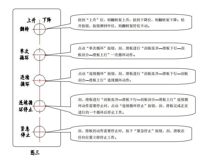 4)紧急停止遇到紧急情况,按下紧急停止按钮,刮、滑板在任何位置立即停止工作。