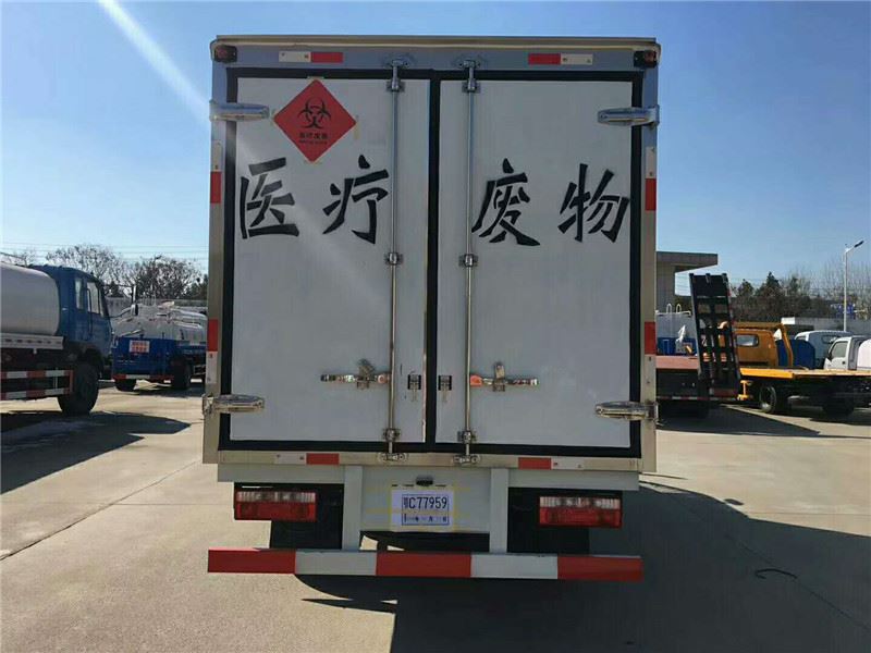 ① 根据医疗垃圾的特点设计,采用密闭性运输,后门为双层密闭结构,并采用迷宫式密 封条,使车厢完全封闭,以达到防止医疗垃圾病菌毒气的扩散作用