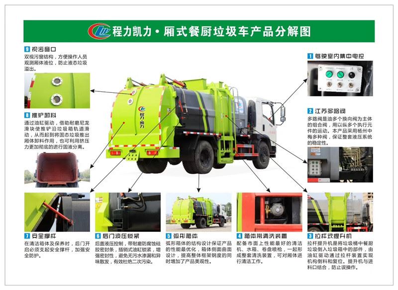 专用车辆。随着我国餐饮业的发展,我国现有酒店、餐馆近350万家,每天产生的餐厨垃圾数量十分惊人,其收集转运方式多样。以餐厨垃圾为对象的餐厨垃圾车也飞快发展,公司提倡绿水青山还我绿色家园..........