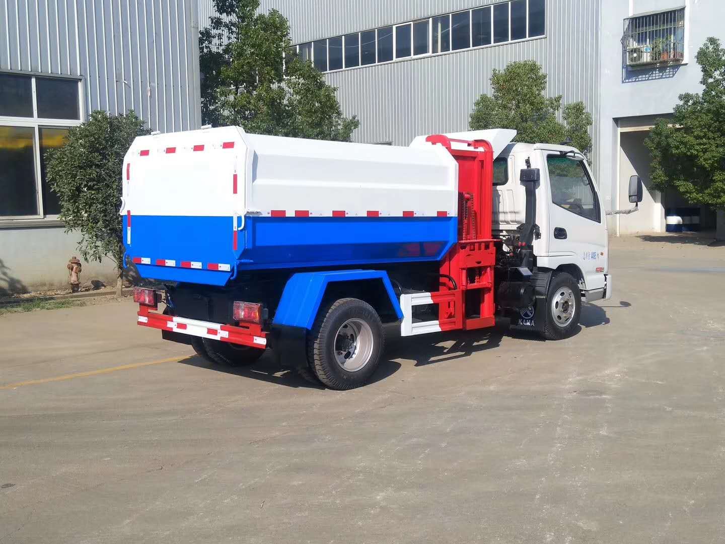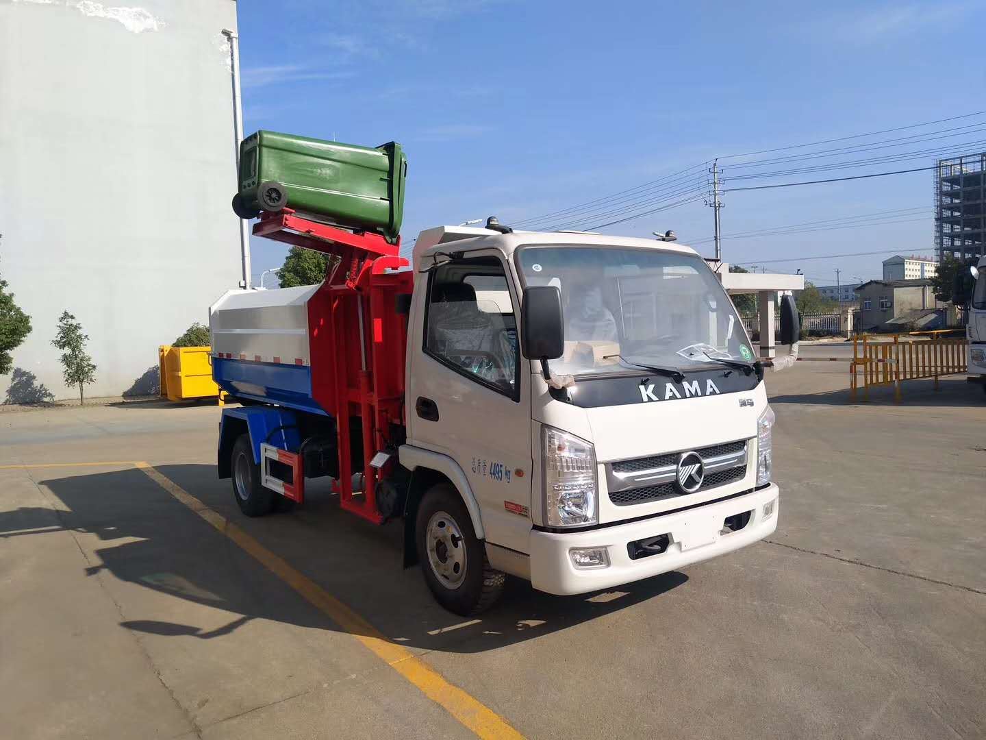 车厢可卸式垃圾车是在二类汽车底盘上加装拉臂自装卸装置,自行完成箱体的整体装载、整体卸载,垃圾自卸功能的专用