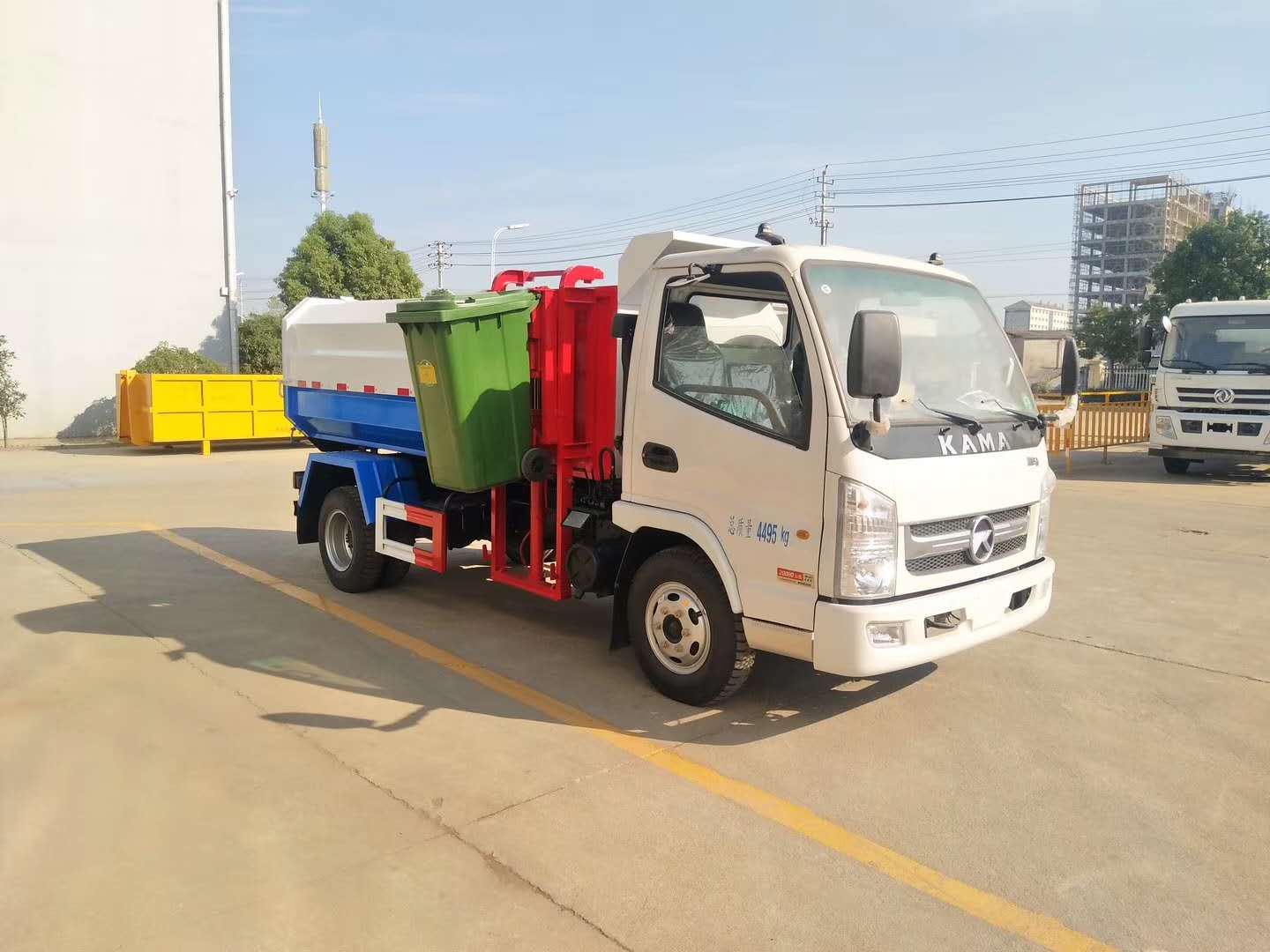 垃圾车)。该设备是在选用国内知名品牌底盘的基础上加装拉臂上装、电-液控制系统、后支撑装置组成。主要用于城市垃圾转运站,进行垃圾收集、转运,运输到位后的垃圾自卸。