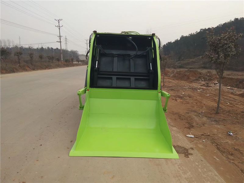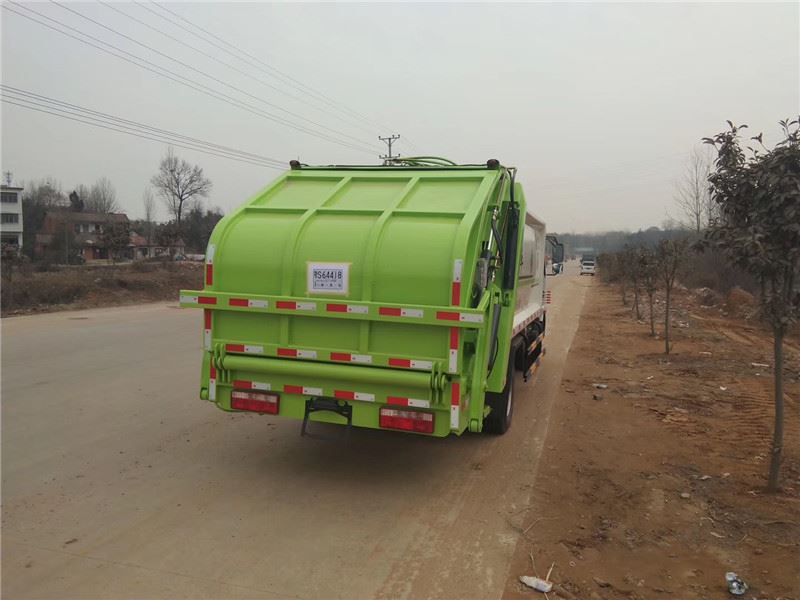 东风10吨压缩式垃圾车,由厢体、装料机构、压缩机构、卸料机构、油泵、油缸、控制阀等组成的液压机构组成。厢体材料为优质碳钢,厚度(单位:mm):边4底4,厢体容积:8m3 ,装料机构由支架,连杆机构,凸轮,挂钩等组成。在油缸作用下,将垃圾桶内的垃圾自动翻转倒入料斗内。