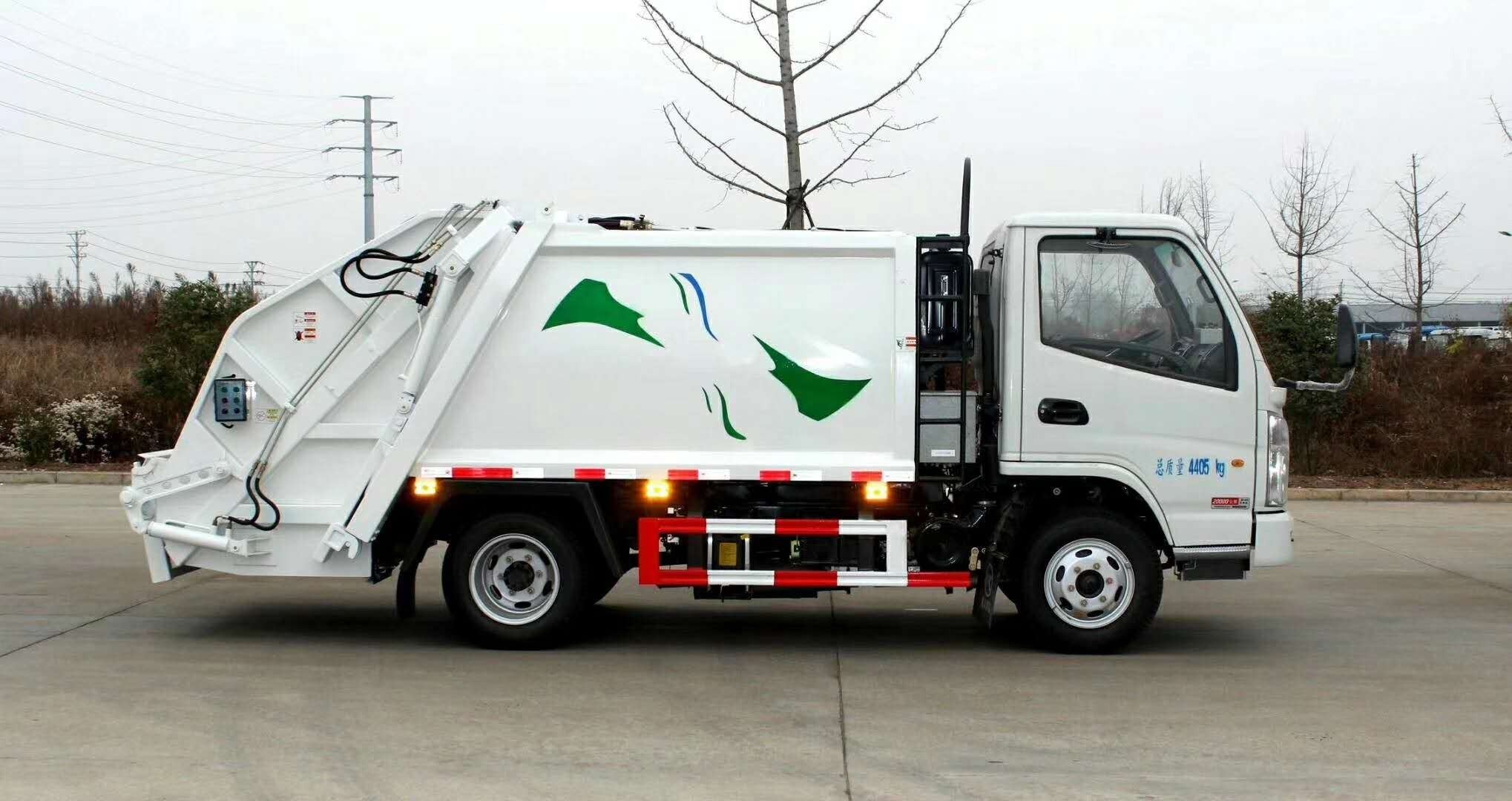 液压系统:由油箱、油泵、多路换向阀、液压缸、滤油器和管路组成,该系统能实现装卸垃圾的各种专用功能。
