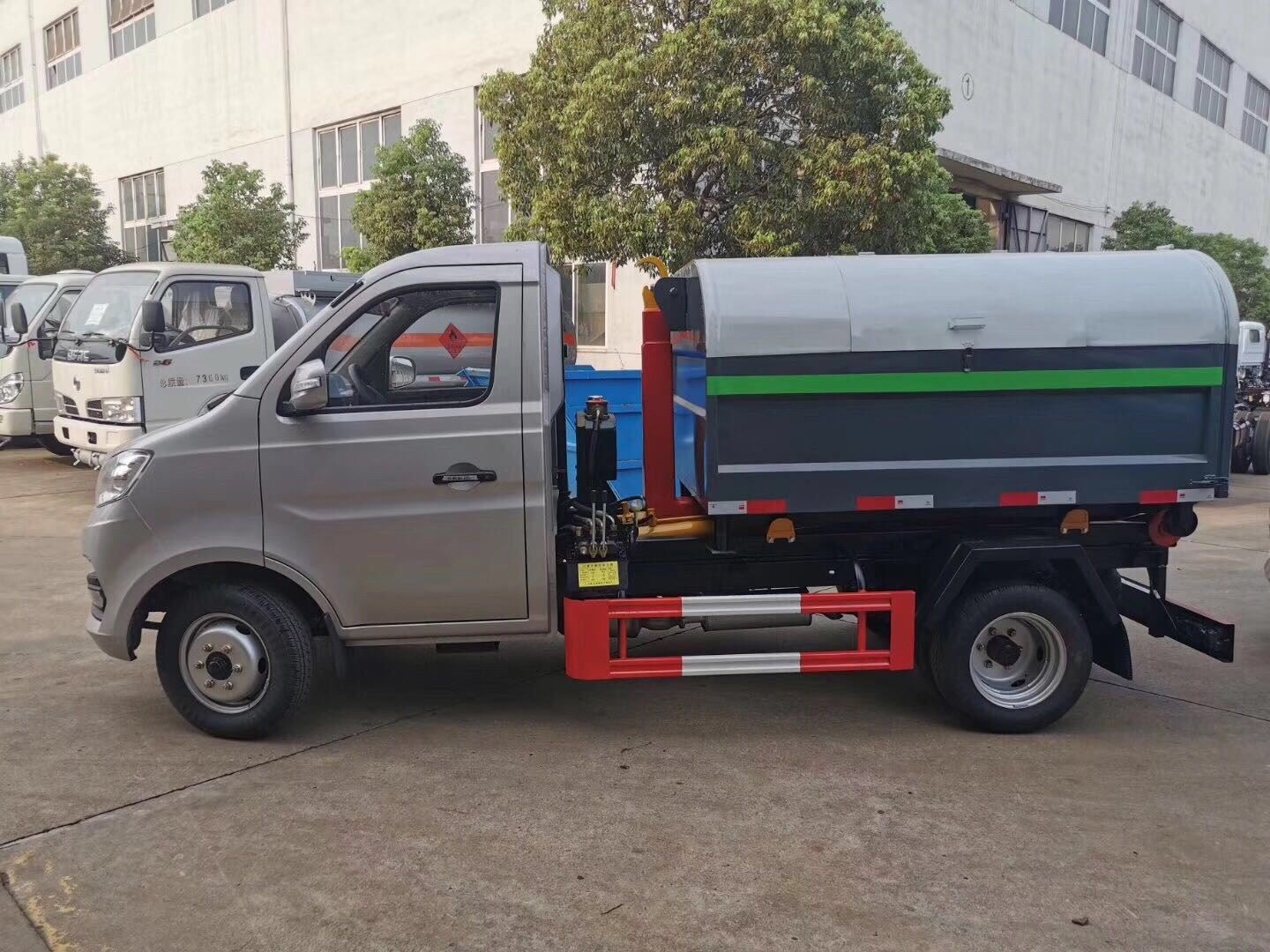 小型长安勾臂式垃圾车采用长安原装底盘(全国联保),具有整体结构设计合理紧凑,使用效率高,厢体采用轻量化设计、运载量大、封闭性能好;是一种安全、节能、环保、高效的新型拉臂式结构环卫专用车