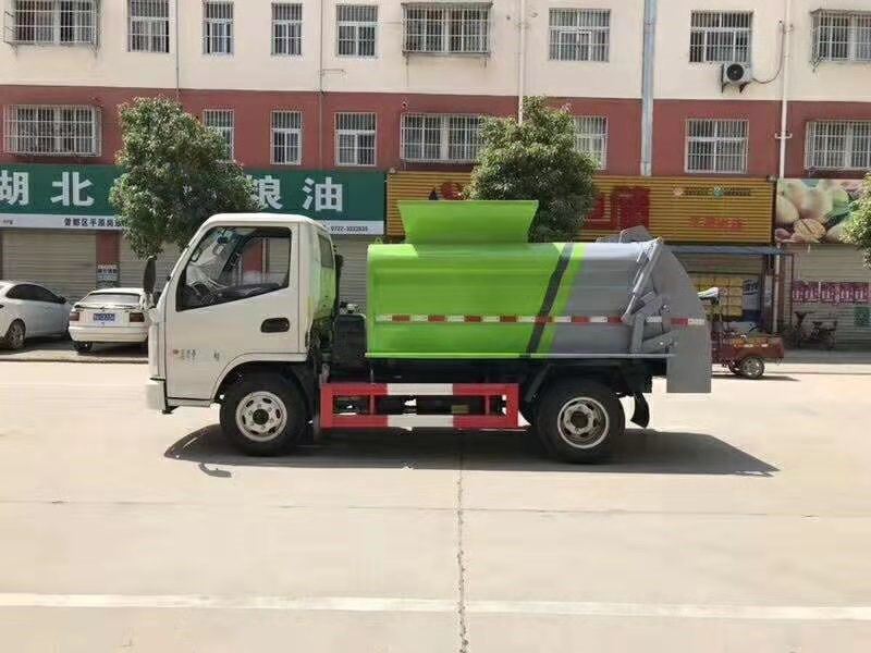 上装配置:箱体容积4立方,箱体材质锰钢板,箱体厚度边四底五(箱体边4mm,箱体底部5mm),前推后翻压,箱体配备污水箱,液压系统合肥长源,电控系统PLC只能电控,可选装挂桶装置和翻斗装置。