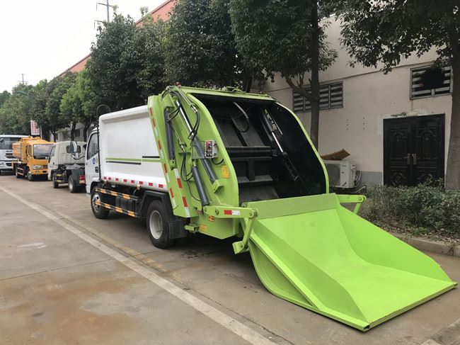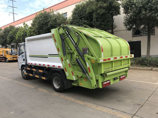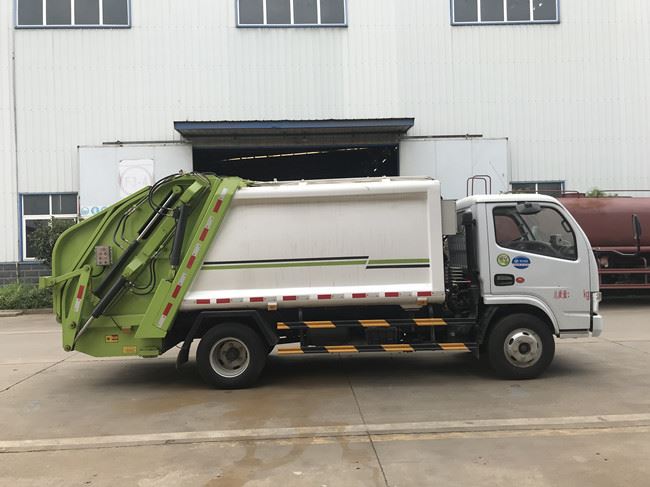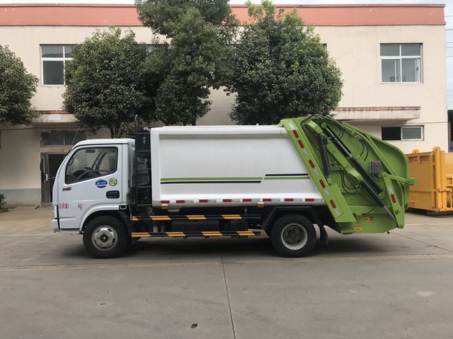 上装配置:新款无筋条箱体,平面圆弧美观大方,有效压缩容积6立方,尾部带翻转上料机构,电控手动双操控器,驾驶室与车尾部双控制箱,尾部带3厘米厚橡胶密封压条,带污水收集槽,大容量污水箱。箱体可按要求喷绘图案和字样。