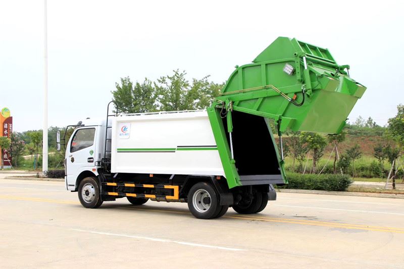 ★压缩式垃圾车简介:压缩式垃圾车主要通过垃圾厢、填装器、推铲、液压系统等专用装置,实现垃圾倒入、压碎或压扁新中绿公司生产的压缩式垃圾车具有垃圾收集方便、高效、能自动反复压缩垃圾,以及蠕动压缩功能、压缩比高、装载量大、作业自动化、密封性好的特点。