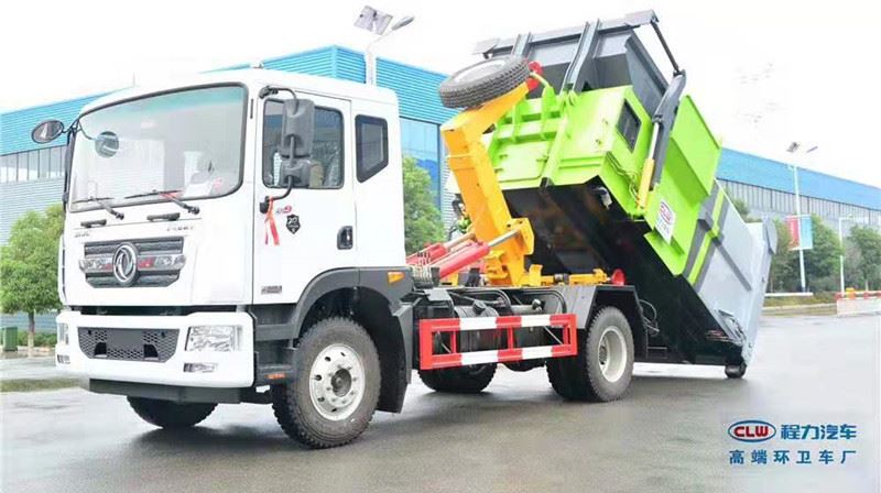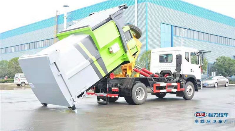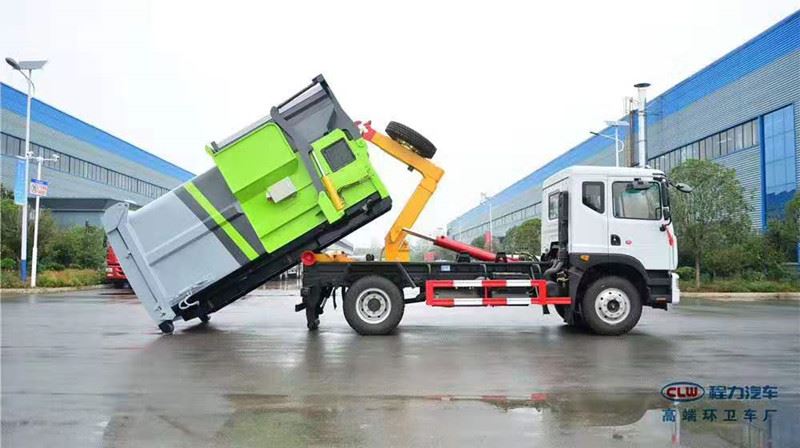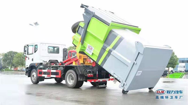 勾臂式车——适用于城市街道,可一车配多斗,在节约成本的同时大幅城市梳理流通。