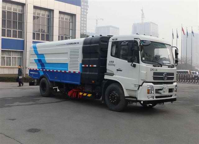 洗扫车性能要求:用中置两扫盘+中置宽吸嘴+吸嘴内置高压喷杆的工作装置布置型式;下面我们来看下这款中联牌洗扫车。
