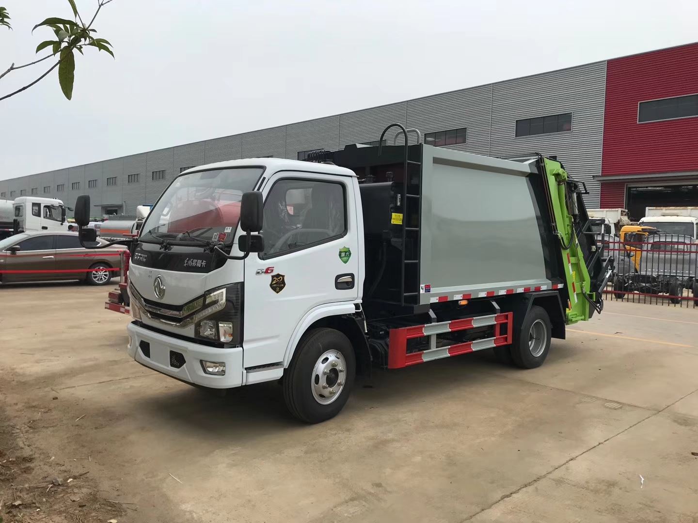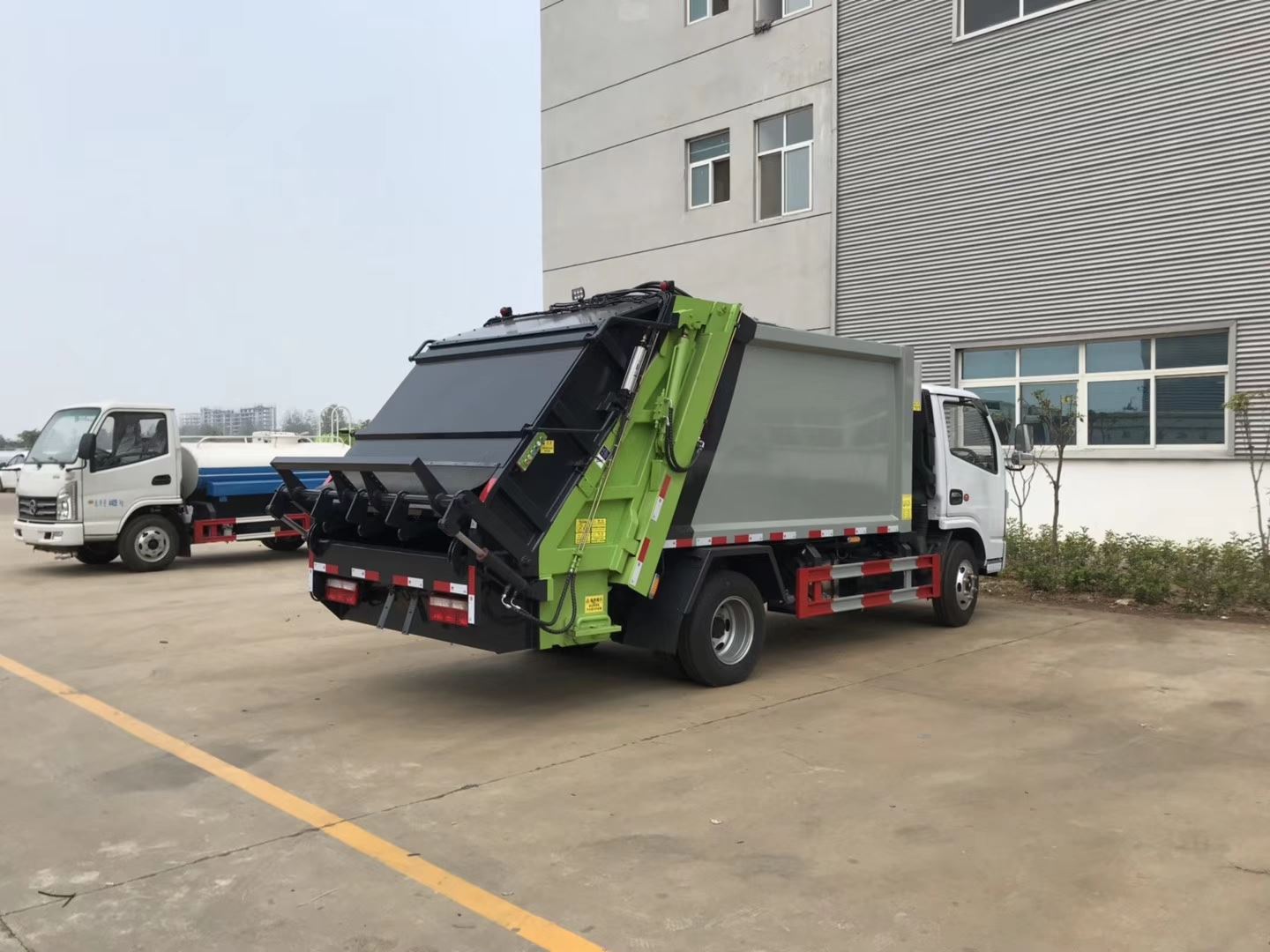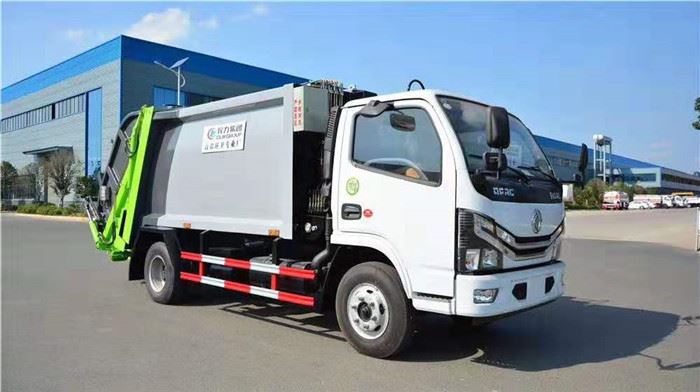 东风6方压缩垃圾车上装配置:采用Q345高强度边四底四锰钢材质制作,弧形厢体,采用国内著名品牌油缸,高密度高压油管,多路阀和液压泵,西门子PLC电控系统,卸料时带一键循环系统,司机不下车可完成卸料工作。带挂桶或小落地斗翻转,尾部可选装挂桶翻转机或三角斗