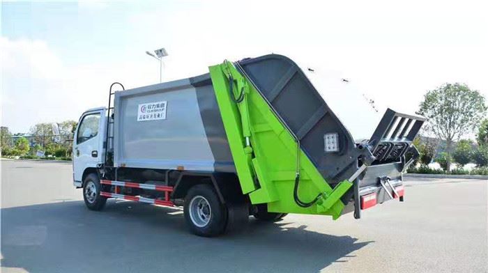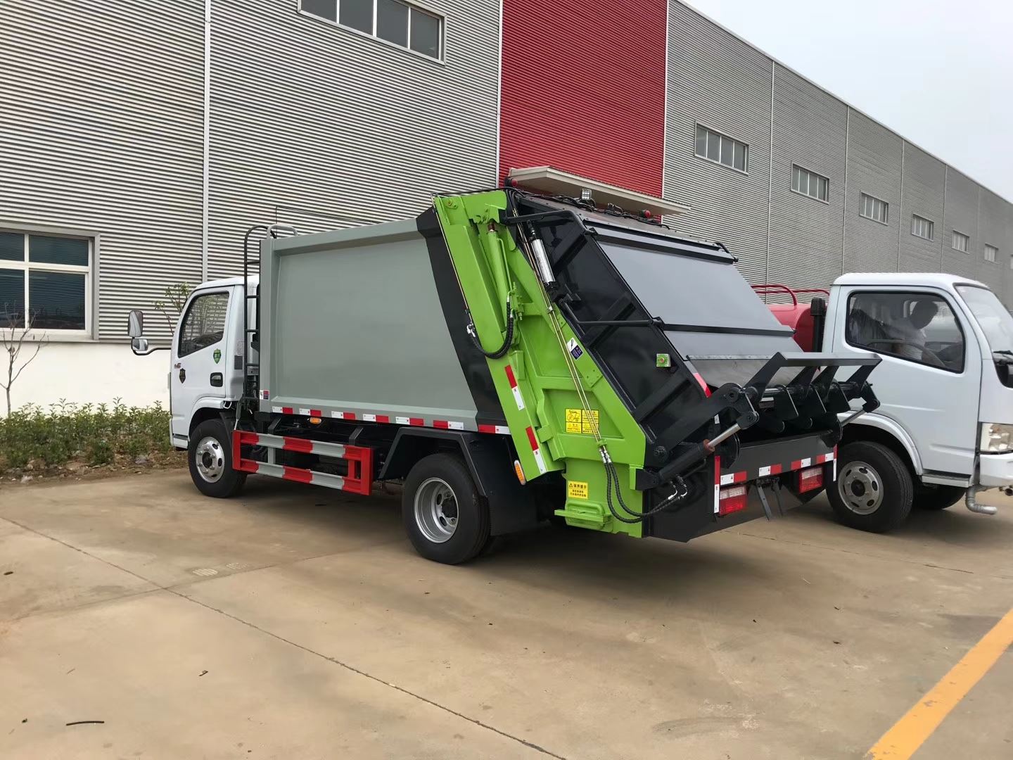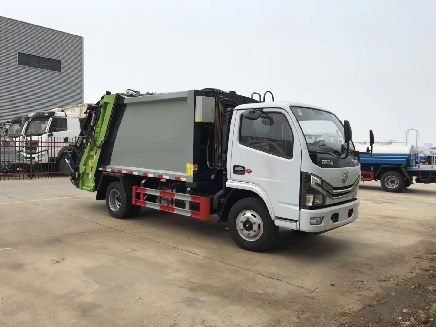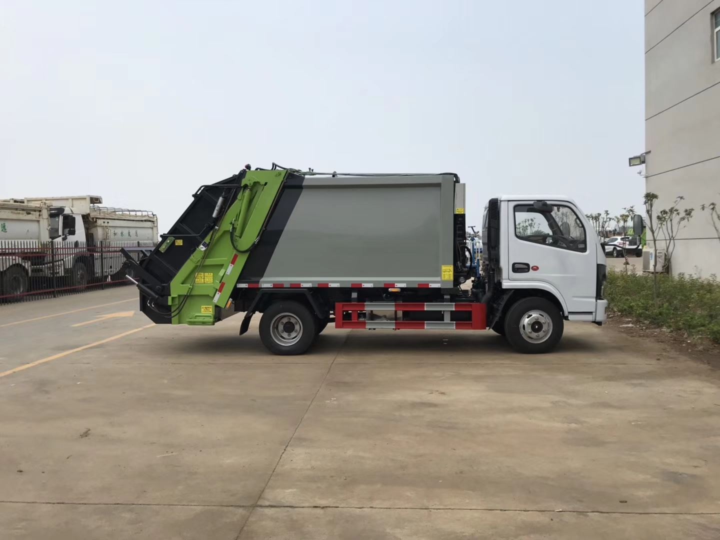 东风6方压缩垃圾车上装配置:采用Q345高强度边四底四锰钢材质制作,弧形厢体,采用国内著名品牌油缸,高密度高压油管,多路阀和液压泵,西门子PLC电控系统,卸料时带一键循环系统,司机不下车可完成卸料工作。带挂桶或小落地斗翻转,尾部可选装挂桶翻转机或三角斗