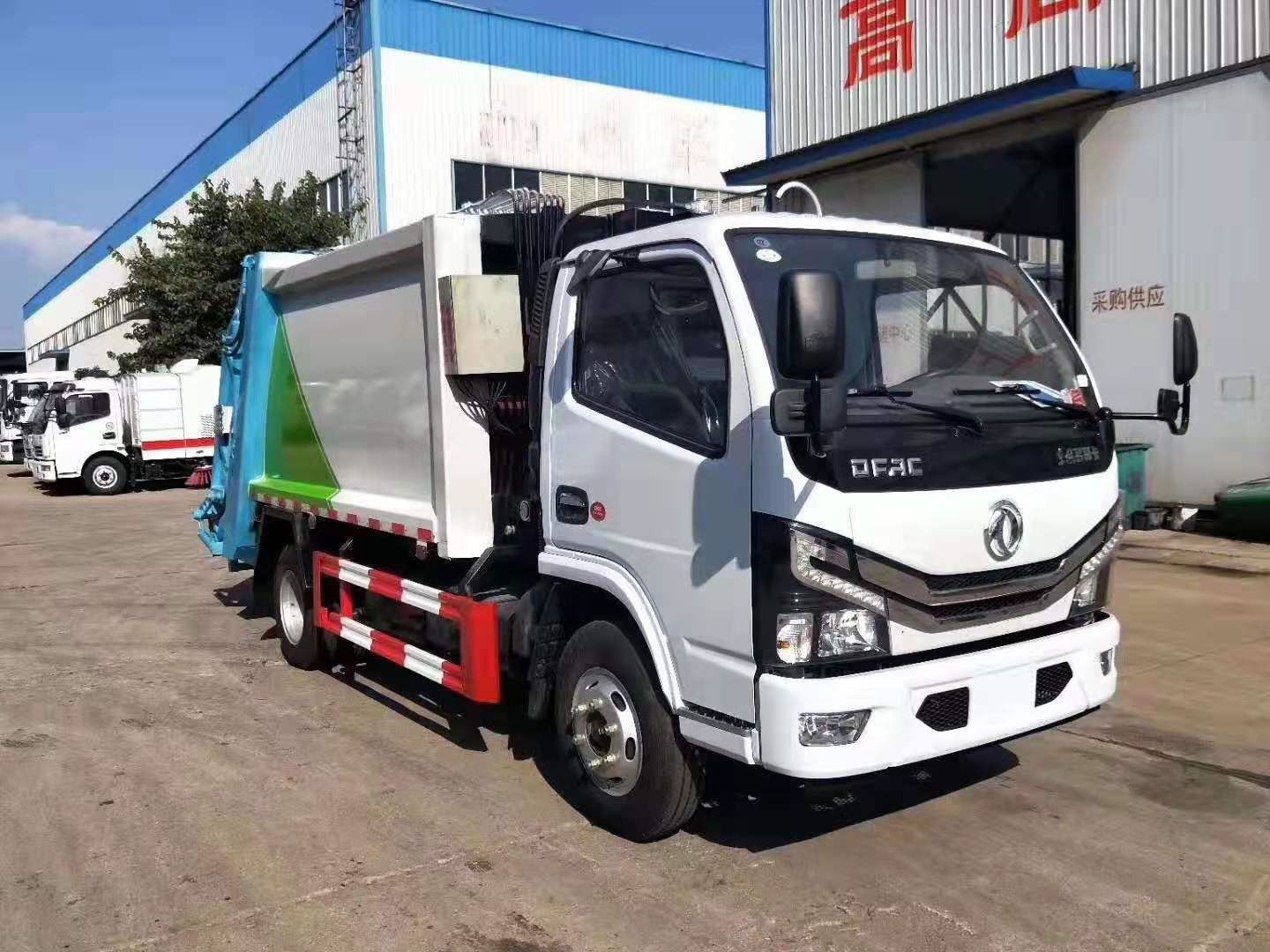 国六东风小多利卡压缩式垃圾车5方;压缩式垃圾车采用自动控制系统,通过填装器和推铲等专用装置,实现垃圾倒入、压碎或压扁,并压实和推卸,把垃圾挤入车厢并压实和推卸,污水全部进入污水厢,较为彻底的解决了垃圾运输过程中的二次污染的问题。垃圾压缩运输车运载量大、封闭性能好、安全、节能、环保