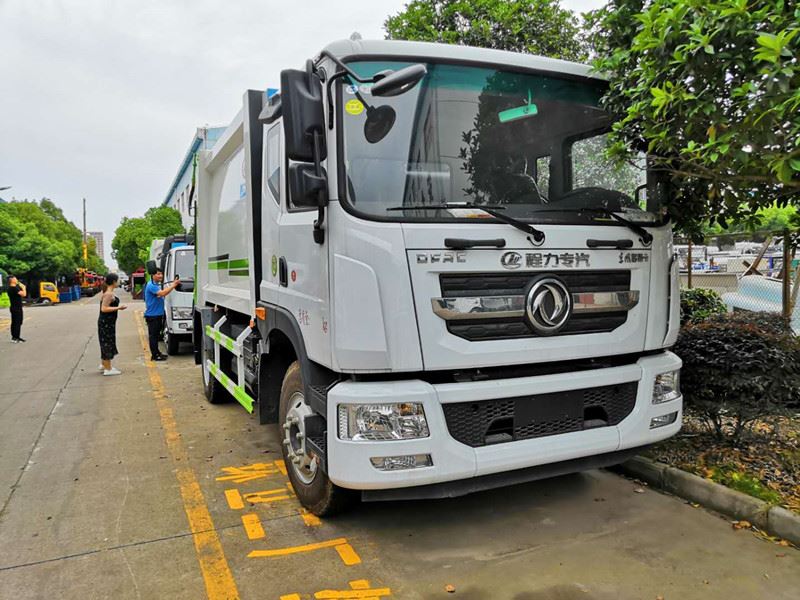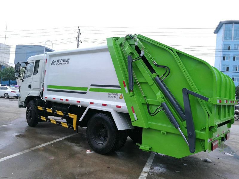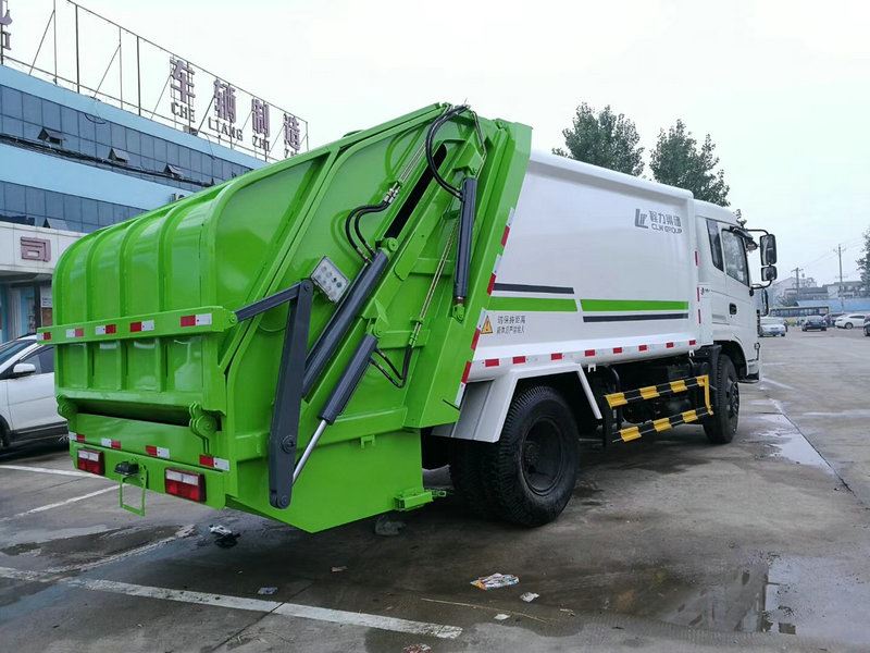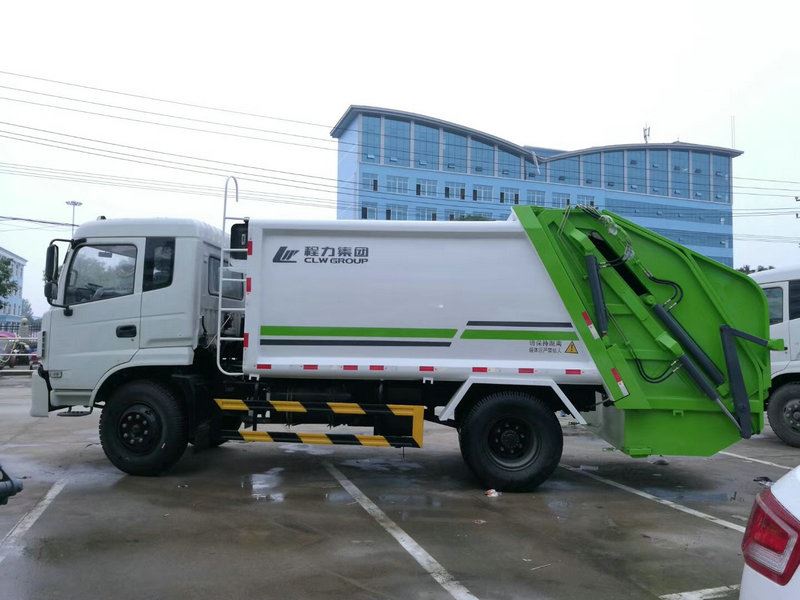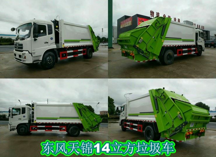程力生产的东风天锦压缩垃圾车4500mm轴距底盘可做14方压缩垃圾车,4700mm轴距底盘可做14方压缩垃圾车,可装约8吨生活垃圾,压缩倍率3-4倍,压缩后生活垃圾密度从0.36变为0.9以上,带污水收集箱,新款平板式箱体更美观,尾部带密封橡胶垫,可防水滴漏二次污染,PLC一键操作系统,驾驶室和尾部双控操作机构。操作简单,节省人力与成本。