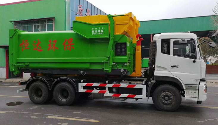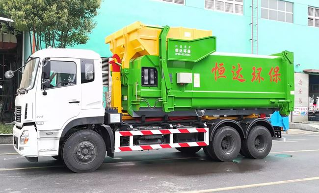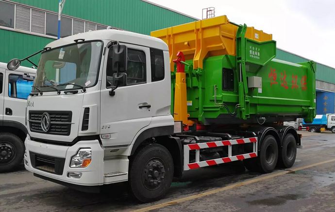 集装载、运输、自卸于一身,无需辅助设备,操作方便简单; ● 一车多箱,循环运输,提高车辆使用效率,降低成本; ● 采用二类底盘改制而成,机动灵活,适合道路较小区域通行; ● 所有操作均可在驾驶室内完成,操作简单、方便,降低了操作者的劳动强度; ● 液压系统采用底盘取力,控制钩臂系统作业