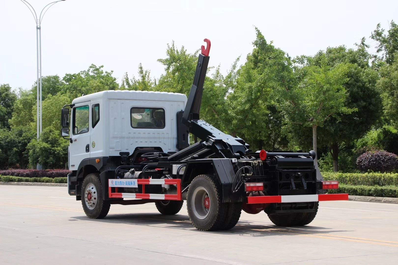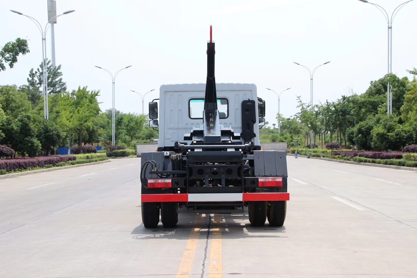 集装载、运输、自卸于一身,无需辅助设备,操作方便简单; ● 一车多箱,循环运输,提高车辆使用效率,降低成本; ● 采用二类底盘改制而成,机动灵活,适合道路较小区域通行; ● 所有操作均可在驾驶室内完成,操作简单、方便,降低了操作者的劳动强度; ● 液压系统采用底盘取力,控制钩臂系统作业。