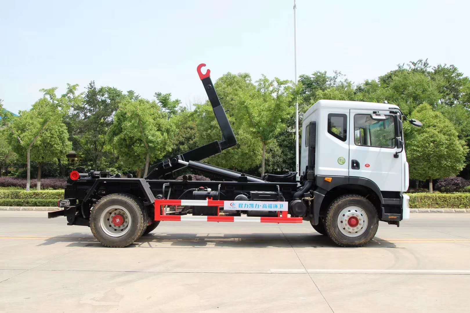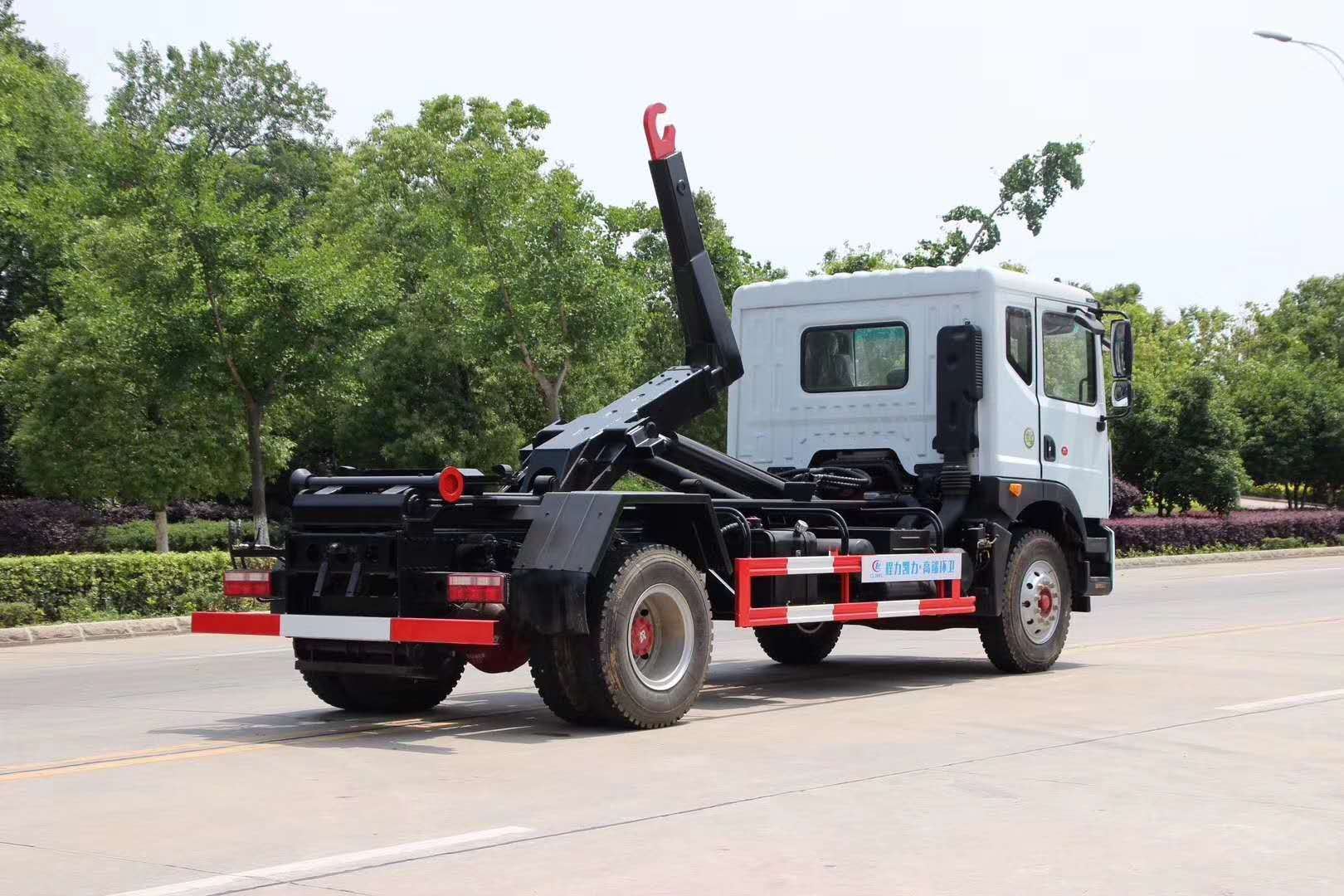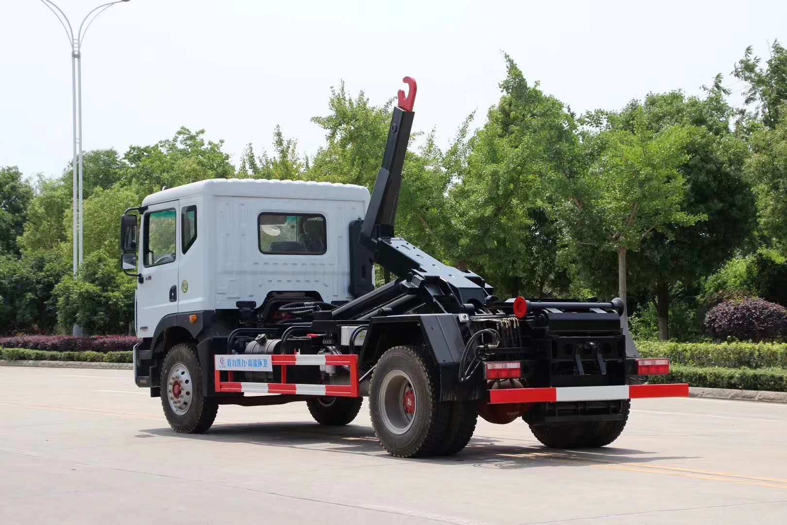 东风多利卡D9国五勾臂式垃圾车采用全液压控制操作系统,垃圾厢与底盘可彻底分离,具有结构合理,操作简单、稳定、使用效率高、密封性能好、倾倒方便等优点,能实现一台车与多个垃圾厢联合作业,循环运输,充分提高车辆的运输能力。可一车带多箱,高效、节能、节约成本