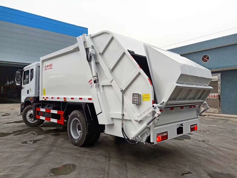 底盘配置:珍珠白带卧铺驾驶室,3950轴距(可装10立方垃圾),4500轴距(可装12立方垃圾)。法士特小8档变速箱,康机180马力发动机,4.5吨前桥 ,10吨后桥,900R20原厂钢丝轮胎带备胎,带方向助力,气刹,断气刹,离合器助力,带ABS,带行车记录仪。