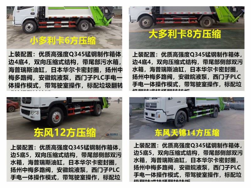 垃圾车多少钱一辆-东风6-14立方垃圾车专业生产厂家 发布作者: 洒水车价格,发布时间: 2021-04-04 23:24:03 简介:程力集团垃圾车发布的垃圾车多少钱一辆-东风6-14立方垃圾车专业生产厂家为本站原创。垃圾车多少钱一辆-东风6-14立方垃圾车专业生产厂家 垃圾车多少钱一辆-东风6-14立方垃圾车专业生产厂家压缩垃圾车的使用又非常广泛,适用于环卫、市政、厂矿企业、物业小区、垃圾多而集中的居民区。一车可带多个大厢,在装卸的运输过程中可有效地避免二次污染。可谓是专用汽车里的一大重大发明,也给世界的环境卫生做出了贡献,垃圾车的发明有非常大的创造意义 。24小时购车电话:右上角和屏幕下方厂家电话!!!后置机构可以根据客户的要求选装不同的配置:1.挂240L或660L国标塑料垃圾桶翻转机构(可选装密封盖)2.挂铁桶式翻转机构(可选装密封盖)3.摆臂式翻转机构(垃圾斗容积约为3立方)4.垃圾斗翻转机构(优点:便于翻转地上松散生活垃圾!