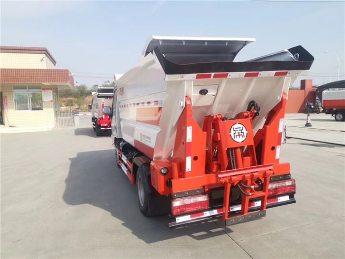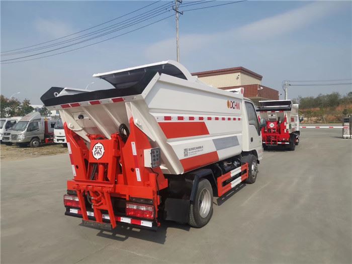 江淮小卡康铃X1,4.7立方后挂桶湿垃圾转运车● 环保性:采用全封闭箱体,带密闭式后门,垃圾的密封运输,杜绝了垃圾和污水沿途撒漏的现象,避免了运输过程中的二次污染。● 高效性:采用结构简单,性能可靠的上料机构,上料机构单次上料循环时间短。● 液压系统:机构动作采用手动多路阀控制,无线遥控控制。 翻桶机构:翻桶架和投料口的优化设计避免了上料时的垃圾洒漏。● 载量多:垃圾箱4.7立方● 卸料方式:采用倾翻卸料方式
