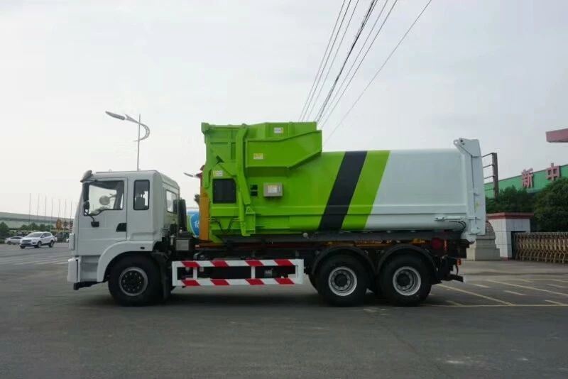性能简介 ★压缩式垃圾车采用机电液一体化技术,借助机、电、液联自动控制系统、电脑控制、手动操作系统系统,通过填装器和推铲等专业配置,实现垃圾倒入、压缩或压扁、强力装填,把垃圾挤入车厢并压实等推卸,污水全部进入污水厢,解决了垃圾运输过程中的二次污染的问题。压缩式垃圾车具有自动反复以及蠕动压缩功能,压缩比高、密封性好、装载量大、操作方便、环保性好、整车利用功率高等优势。