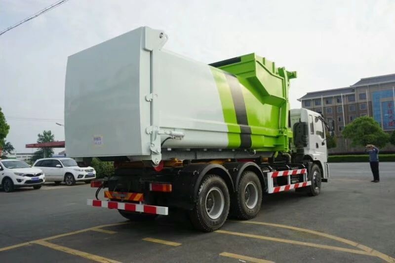上装配置:链条式提升机构(120/240塑、铁桶)、低合金槽钢加强副梁、垃圾收集箱(3mm厚碳钢底板、侧板)、三节液压自卸油缸(最大举升力5吨)、液压系统控制提升机上升+下降+自卸作业,适用于城乡街道垃圾桶、生活区垃圾桶、工业园区垃圾桶的垃圾收集转运。
