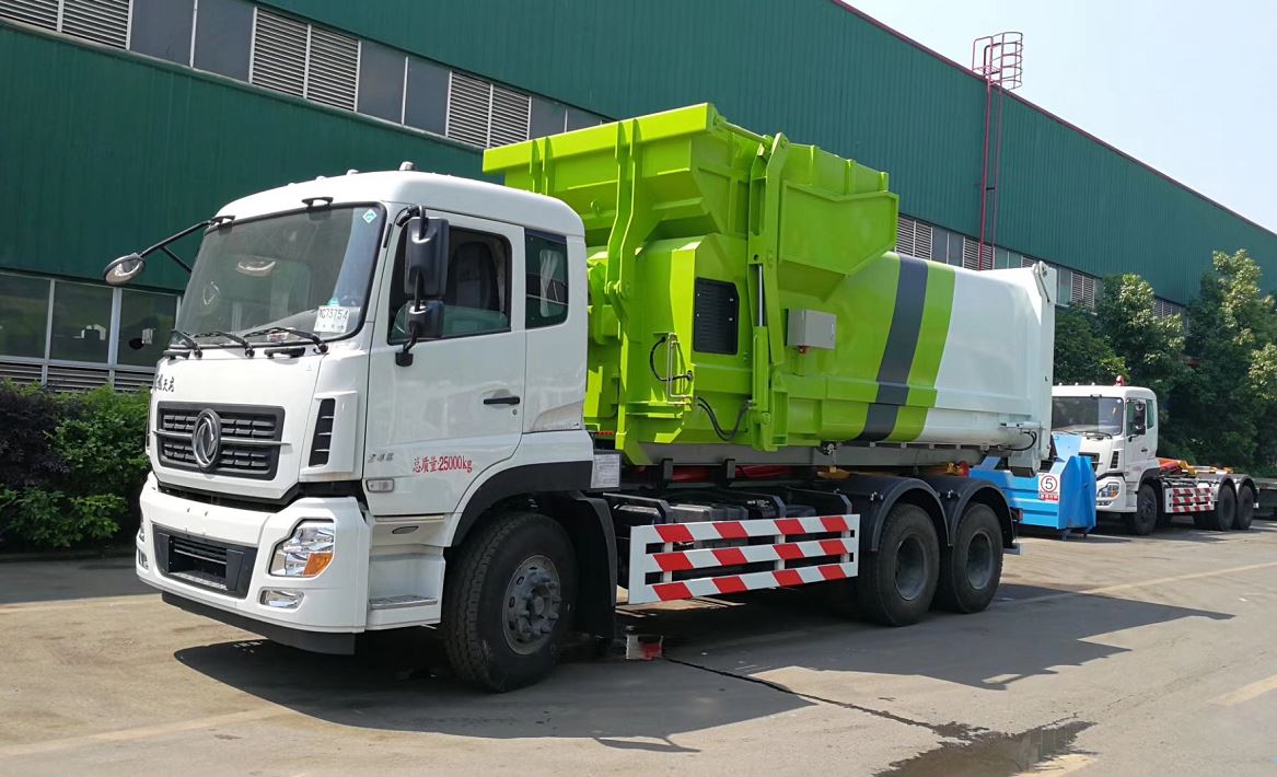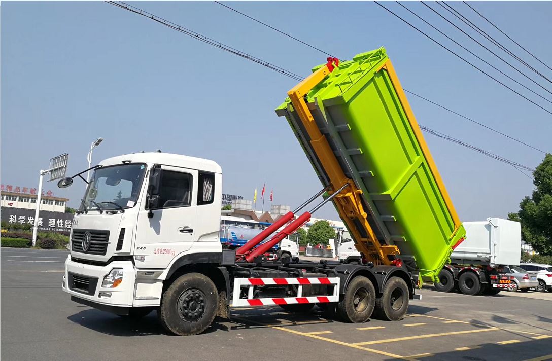 20吨东风天龙后双桥大勾臂垃圾车厂家配套18方移动垃圾站报价 发布作者: 洒水车价格,发布时间: 2021-04-04 23:26:06 简介:程力集团垃圾车发布的20吨东风天龙后双桥大勾臂垃圾车厂家配套18方移动垃圾站报价为本站原创。20吨东风天龙后双桥大勾臂垃圾车的价格需要根据个人需求来定,如20吨大勾臂垃圾车厂家配套的一般是18方移动垃圾站 20吨东风大勾臂垃圾车价格,先来看看发动机马力,可选240康明斯马力或者选康明斯270马力。东风天龙后八轮大勾臂垃圾车配套使用的移动大垃圾箱,一般为17立方、18立方或最大19立方,厂家批发价格在12万多起,具体价格详情可致电厂家大勾臂垃圾车主要用于城市垃圾的收集和运转,具有装、卸垃圾自动化程度高、工作可靠、密封性好、装载容积大、操作简便、运输过程密闭,无污水泄露和异味的散发,环保性好等特点。可配装载不同规格的移动垃圾箱,具有广泛的适用性。目前广受环保部门偏爱。