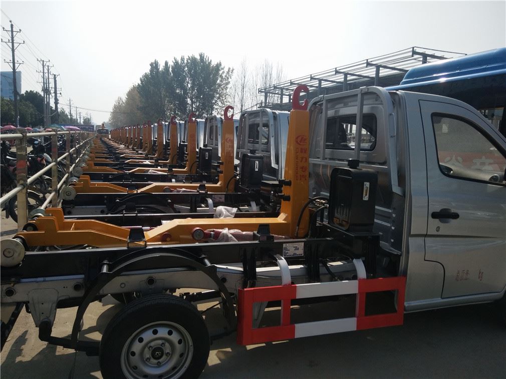详细介绍:勾臂式垃圾车,又称拉臂式垃圾车、车厢可卸载式垃圾车。该车广泛适用与城市街道学校垃圾处理,可一车配备多个斗,各个垃圾点放置多个垃圾斗,带自卸功能,液压操作,方便倾倒。该车的箱体部分完全由液压系统来控制,在平日里可将车载垃圾箱放置到各个垃圾收集站,待垃圾收集满后,该车可直接开赴至垃圾站,通过液压系统的操控,可将垃圾车后座上加装的勾臂放下,挂住站内垃圾箱前端的连接点,将垃圾箱拉至车体的后座上,此时即可启动车辆,将垃圾运送至垃圾处理站内,进行自卸式倾倒。该车最主要的优点就是可一车配多斗,一辆车就可以维持数个垃圾收集站的运转,效率高,且箱体为密封式设计,不会造成二次污染。