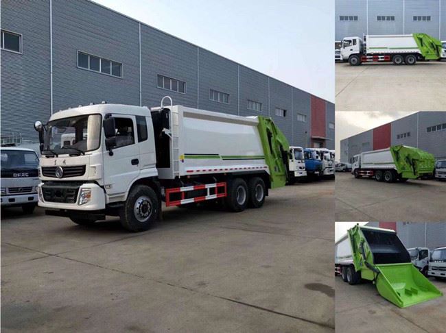 后双桥压缩式垃圾车的容积可做到16-18立方,目前主要是东风天龙后双桥压缩式垃圾车一车独大: