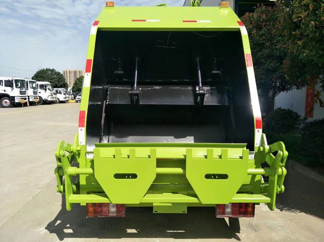 后装压缩式垃圾车是在压缩垃圾车基础上加装后挂桶翻转机构或垃圾斗翻转机构。由密封式垃圾厢、液压系统、操作系统组成。整车为全密封型,自行压缩、自行倾倒、压缩过程中的污水全部进入污水厢,较为彻底的解决了垃圾运输过程中的二次污染的问题,具有压力大、密封性好、操作方便、安全等优点。