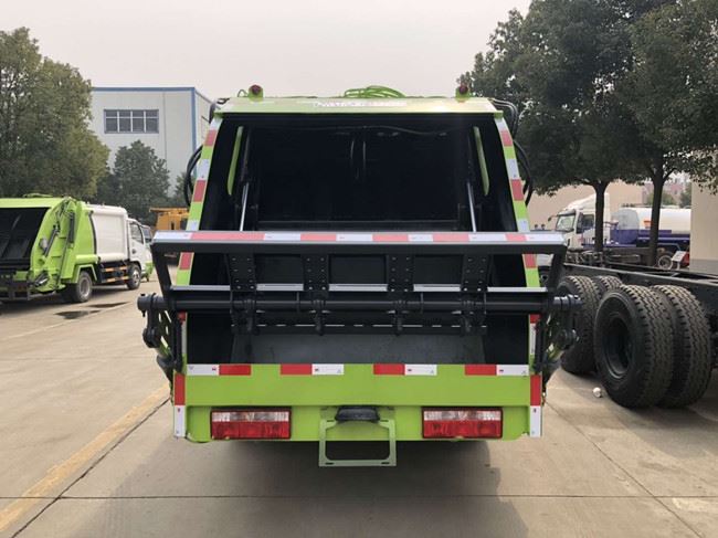 3.、后翻转机构可根据用户要求选装:①、挂240L或660L国标塑料垃圾桶翻转机构;②、挂铁桶式翻转机构;③、摆臂式翻转机构(垃圾斗容积约为3立方);④、簸箕斗式翻转机构(优点:便于翻转地上松散生活垃圾);⑤、全密封垃圾斗翻转机构。