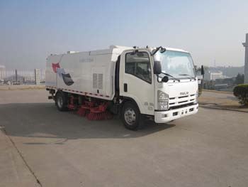洗扫车性能要求:用中置两扫盘+中置宽吸嘴+吸嘴内置高压喷杆的工作装置布置型式;下面我们来看下这款福龙马牌洗扫车。